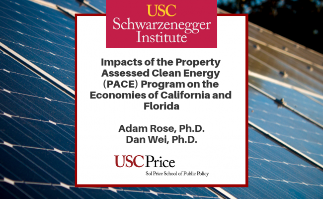 Adam Rose, Ph.D. and Dan Wei, Ph.D assess the impacts of the Property Assessed Clean Energy (PACE) Program on the economies of California and Florida. Property Assessed Clean Energy is a way to finance a wide range of energy and water efficiency, renewable energy, and hazard mitigation improvements permanently attached to residential and commercial properties.