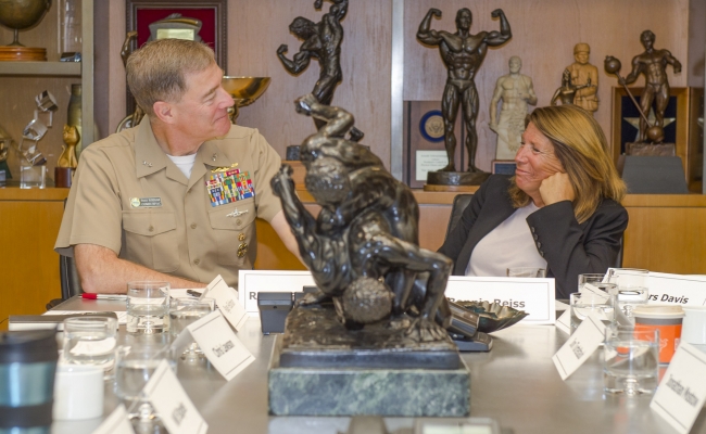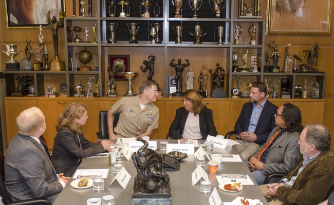 The Institute is proud to continue to collaborate with the armed forces and to support the brave Americans who choose to serve our country. And when we were presented with the opportunity to host the Commander of the Pacific Submarine Force, the largest in the world, we were honored to do so. On April 24th the Schwarzenegger Institute convened a round table meeting with Rear Admiral Fritz Roegge and representatives from the media and entertainment industry to discuss the geopolitical situation in the Pacific region and the portrayal of submariners in popular culture. Admiral Roegge acknowledged the profound impact that media has on morale and recruiting in his command and was interested in speaking with creative leaders from the entertainment industry to help ensure that his sailors and civilian personnel, and the challenges they face, were depicted accurately.