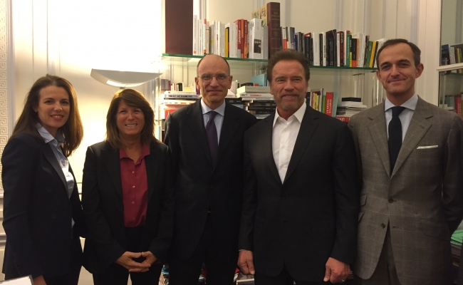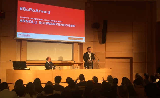 Monday evening Frederic Mion, President of Sciences Po University, hosted the USC Schwarzenegger Institute and Governor Schwarzenegger. Sciences Po is one of the premiere universities of political and international studies in Europe. Schwarzenegger expressed enthusiasm for his Institute's collaboration with Sciences Po, and expressed the important role universities and research play in addressing climate change.
