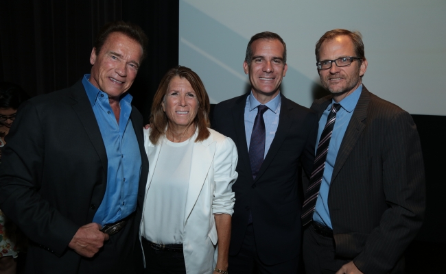 Both Mayor Garcetti and former Governor Schwarzenegger lauded the importance of people power and working across political parties. Garcetti asked the audience to help him use social media to reach people in traditionally red states and Governor Schwarzenegger encouraged everyone in the room to host similar events and to invite the press to cover them, saying that "we can't keep talking to ourselves."Schwarzenegger also acknowledged the Institute's Global Director Bonnie Reiss describing her as a "treasure" who continues to help him navigate environmental and education issues and work with Democrats.