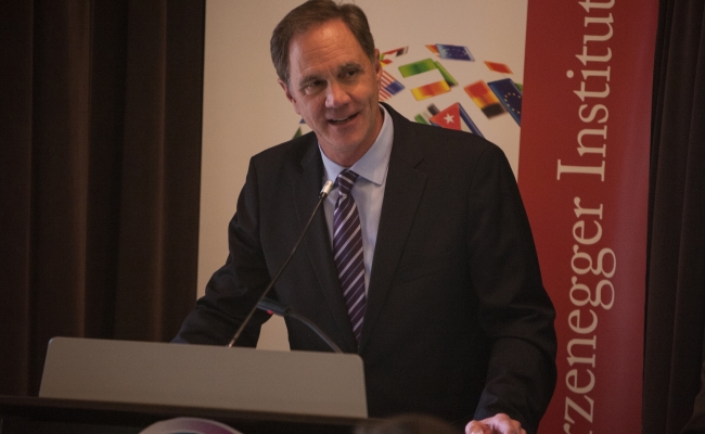 Remarks from Dr. Mazmanian and Governor Schwarzenegger helped situated the multiple, intersecting topics of discussion by addressing political contexts and ideals that shape ongoing policies. Dr. Mazmanian’s presentation, “California Policy Logic,” drew attention to need for a cross-sectoral basis for climate action. In linking industry groups, academia, and public leadership, cities, states, and provinces will be at opportunity to ensure the right policies and programs are implemented. The importance of establishing clear policy goals and timelines, ongoing performance monitoring, and relying on markets to create political constituencies for change were cited as critical in the development of Californian environmental policy. Other central themes of the presentation included the need to create regulations that signal the importance of safeguarding environmental assets while also creating approachable new markets for entrepreneurs, and the inextricable link between politics and science that informs environmental policy development. I’m grateful to have studied these topics at Price – I can appreciate how, without an awareness of the political landscape in which policies are researched, forged, and implemented, the extent of public-private partnerships in environmental protection is difficult to fully describe and address.